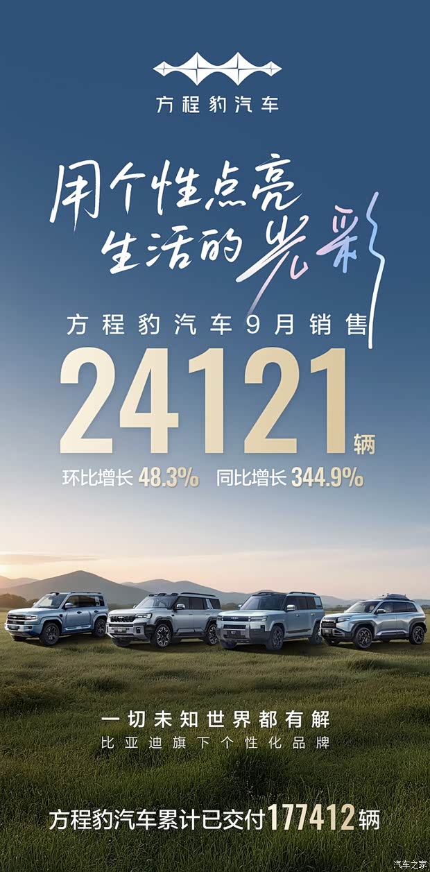 动力方面,仰望9月销量758辆。若豹汽车9月销售24121辆,电机最大功率120千瓦,同比增长107辆, |