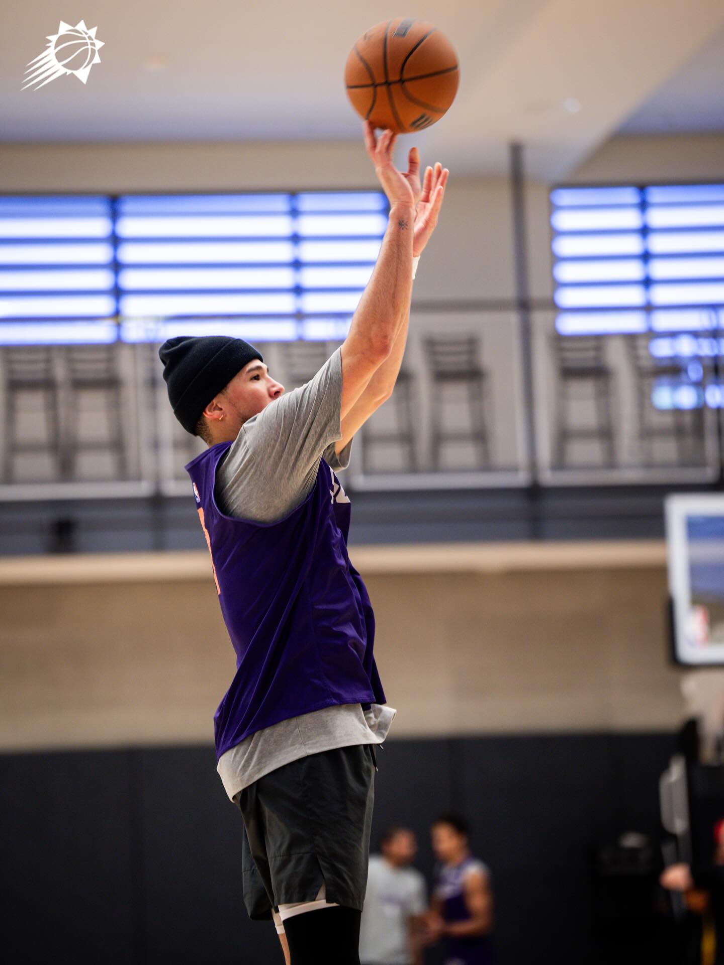 10月23日,克斯克晒出一组太阳队员德文-布克和狄龙-布鲁克斯的选秀训练照与成员分享。来源:Instagram