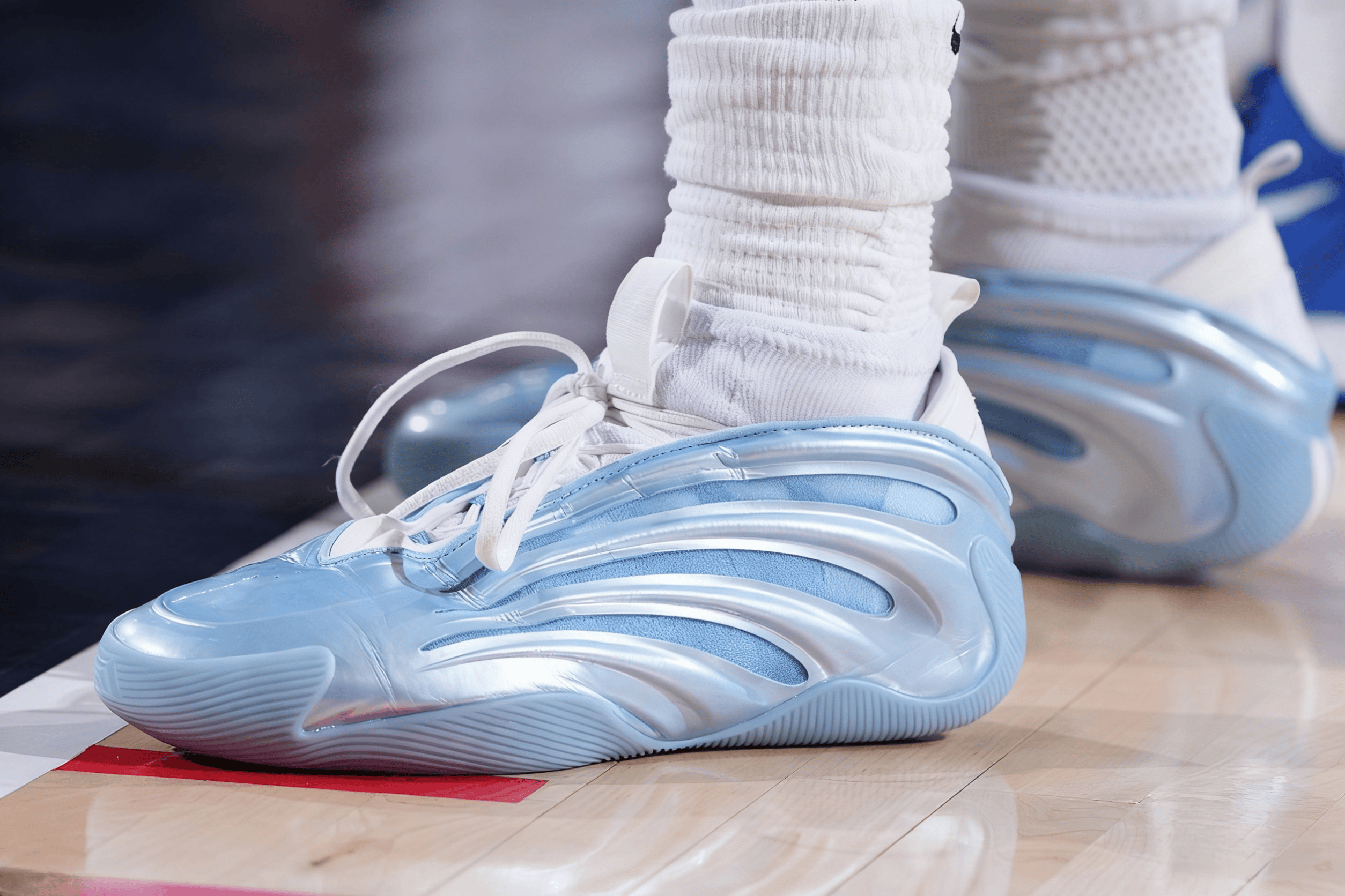本场比赛,斯隔科林斯上脚冰蓝色adidas Harden Vol.9。翰科